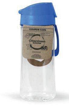 Bouteille de haute qualité d’une capacité de 530 ml en matériau tritan résistant à la chaleur et sans BPA. Disponible dans une large gamme de couleurs translucides, avec un bouchon à vis assorti.