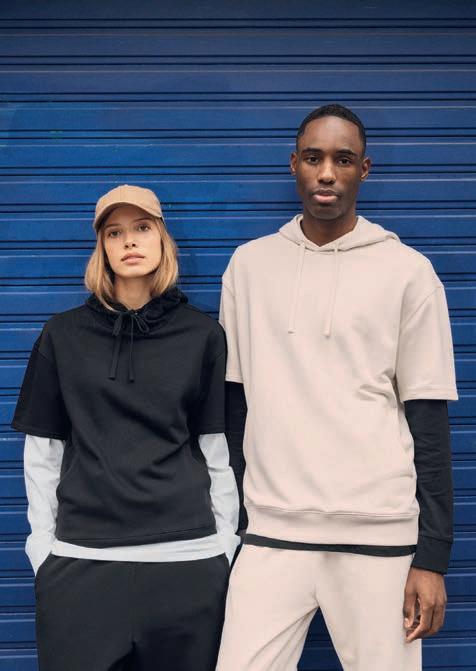 2-2253 : Sweat-shirt capuche manches courtes coton bio et polyester recyclé