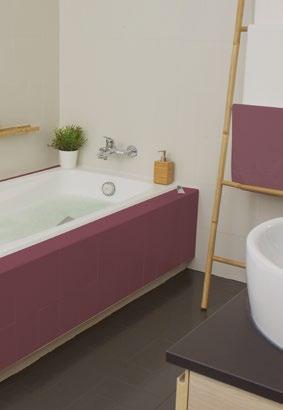 Le film de peinture forme un maillage en surface, empêchant eau, graisses, détergents, cosmétiques de tacher le support.