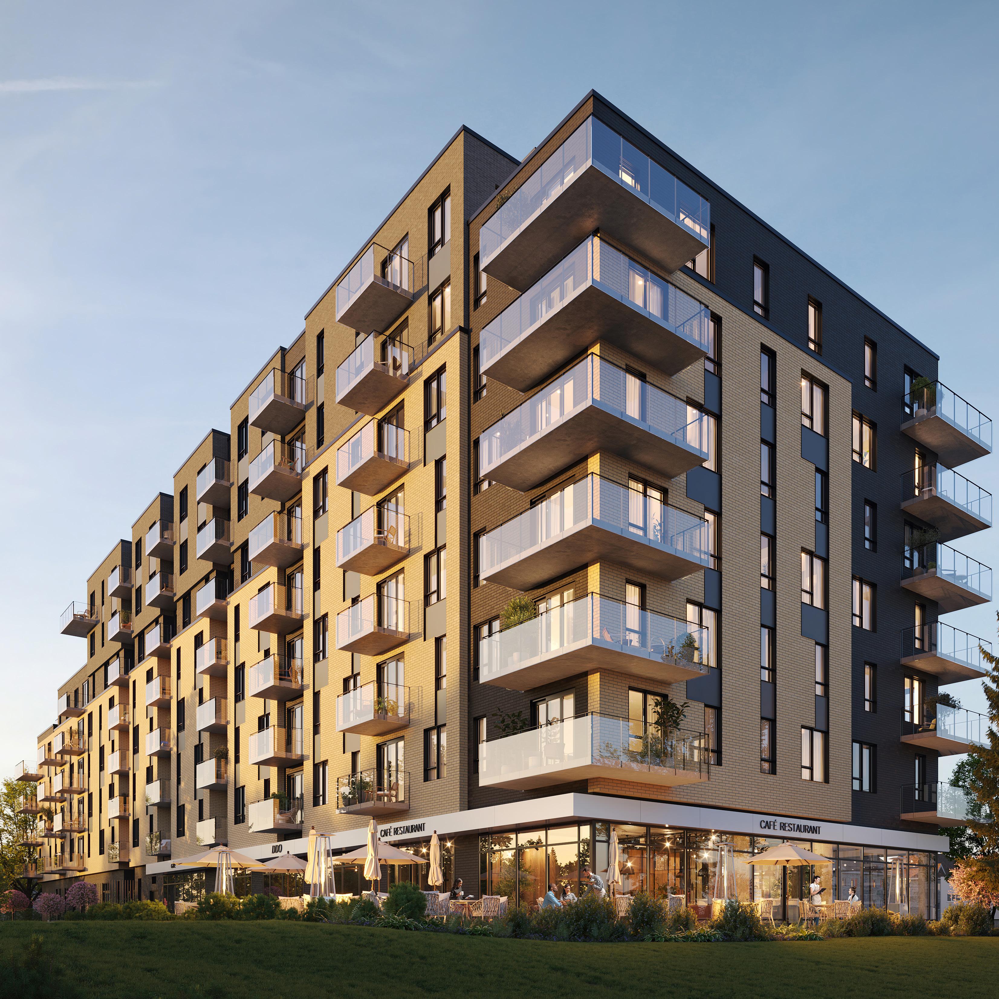 This eight-story residential building features 120 bright and modern apartments designed to suit today’s lifestyles. Redefining the rental experience in Dollard-des-Ormeaux, 17 HYMAN combines comfort and well-being.