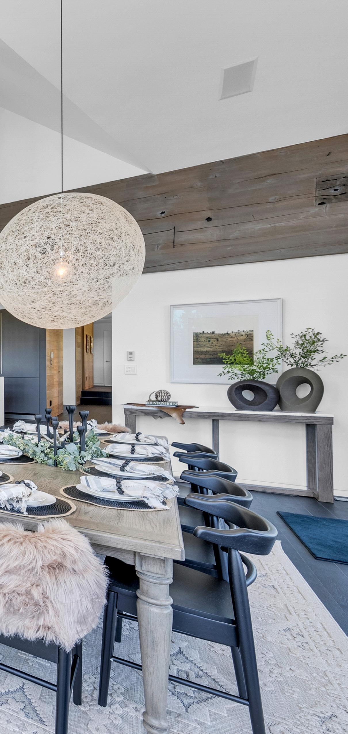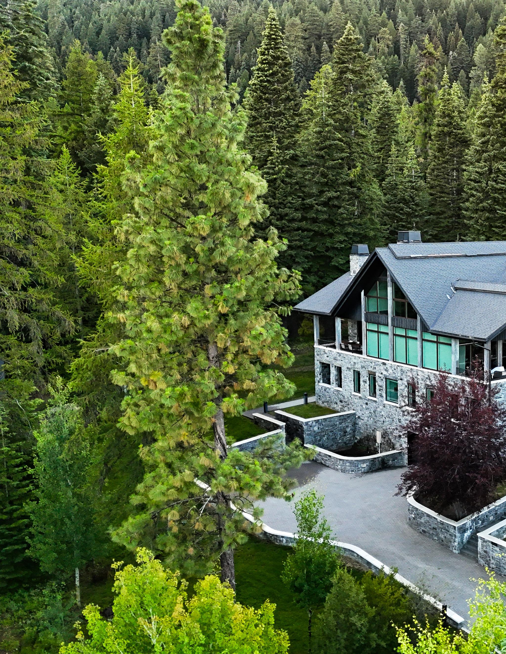 Designed by award-winning Australian architect Dale Jones-Evans, the residence exemplifies his signature fusion of innovation and environmental harmony. Crisp architectural lines and minimalist elegance are balanced by the warmth of reclaimed 19 th -century timber, sourced from a historic Idaho mine.