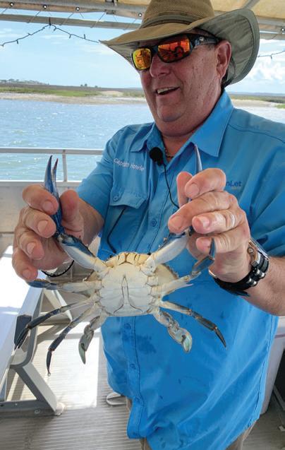 FAM highlights, clockwise from top: Walking the beach during an eco-tour; flowers at Brookgreen Gardens; cruising Murrells Inlet; a naturalist’s blue crab model