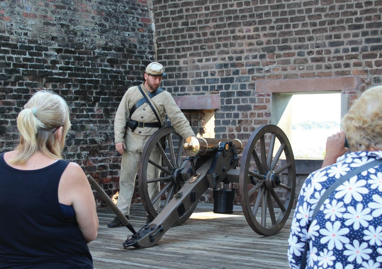 After settling in at various hotels in Savannah’s Historic Landmark District, travel planners gathered for a motorcoach and walking tour of three of Savannah’s famous cemeteries. The group visited Laurel Grove South, an African American cemetery, then headed to nearby Laurel Grove North, the final resting place of Savannahians including Florence Martus, the city’s “Waving Girl.” At Bonaventure Cemetery, made even more famous by the hit film “Midnight in the Garden of Good and Evil,” the group visited graves of important and legendary Savannah figures. The day ended at The Lady and Sons, a downtown restaurant owned and operated by chef Paula Deen and her two sons. Deen made a surprise appearance. She welcomed the group, talked for a few minutes and took selfies before the planners dug into a hearty and delicious family-style meal of fried catfish, macaroni and cheese, Deen’s famous cheddar biscuits and other Southern comfort foods.