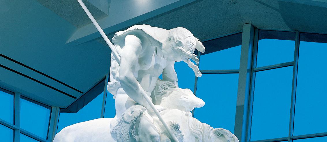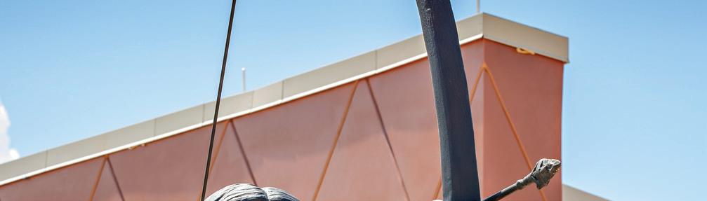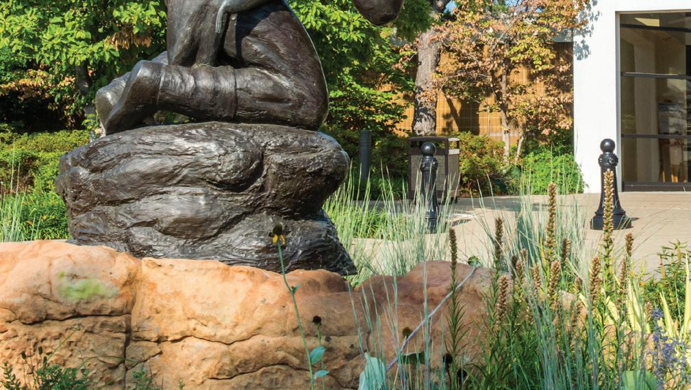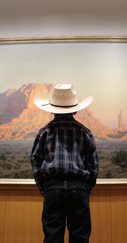 gallery features a rotating collection of Native Ameri can Art, while another is dedicated entirely to the his tory of the American cowboy. Guests see historic arti facts, such as Native American clothing and firearms from the 1800s. The museum also features rotating exhibits, such as artwork with Western themes. For lunch, groups can enjoy a sandwich, salad or hot dog at the Museum Grill, which overlooks the museum’s sculpture garden.