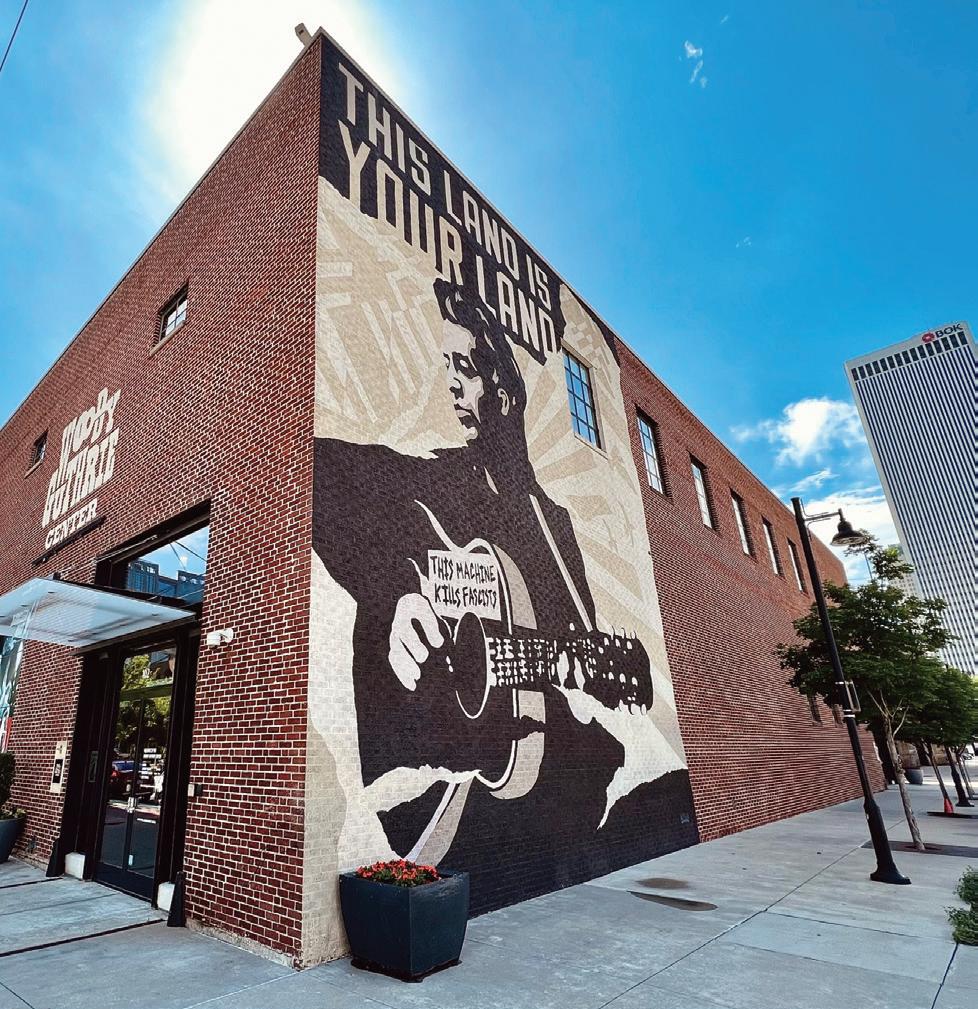 Honoring one of the most famous names in the mu sic industry since the 1960s, the Bob Dylan Center opened to the public in May of 2022. Dylan, a talented folk singer in his own right, is perhaps best known for his song writing. Some of his most famous songs were sung by other art ists like Johnny Cash and Jimi Hendrix, and his poetic lyrics crop up in many genres even today. Dylan is also known for his polit ical influence, as he supplied a soundtrack to important periods of American history such as the Civil Rights Movement. Though not from Oklahoma, he connected with the state’s down-to-earth culture, which explains why the center is located in the Tulsa Arts District. The 29,000-square-foot museum stems from a collection of personal artifacts provided by Dylan himself. The museum has over 100,000 items in its archive, from Dylan’s essays and poems to his personal correspondence, as well as multiple exhibits and a screening room that seats 55. Groups can tour the museum to check out its rotating exhibits and learn about Dylan’s life, career and extensive influence on the music industry.