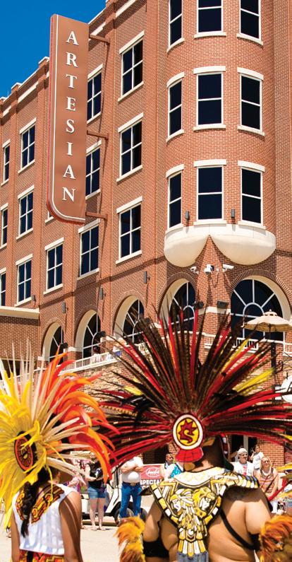 Located on 184 acres in southern Oklahoma, the Chickasaw Cultural Center opened in 2010 to pre serve and promote the traditions and practices of the Chickasaw tribe. Its beautiful campus is home to sculptures, gardens and water features that allow guests to enjoy the nat ural beauty of the area, as well as an amphitheater for perfor mances and gatherings. Groups can also explore a historical ly accurate replica of a 1700s Chickasaw Village, where they may catch demonstrations of traditional Chickasaw language, games and dances. Inside the exhibit center, interactive rotat ing exhibits highlight different aspects of Chickasaw life. The exhibit center also houses several fine art galleries and other educational exhibits that teach visitors about the Chickasaw’s history. Groups can tour the facilities on their own or with a guide. They can enjoy some traditional Chickasaw recipes at the center’s café. For an authentic Chickasaw souvenir, groups can visit the gift shop, where they can purchase native cloth ing, jewelry, pottery and baskets of their own.