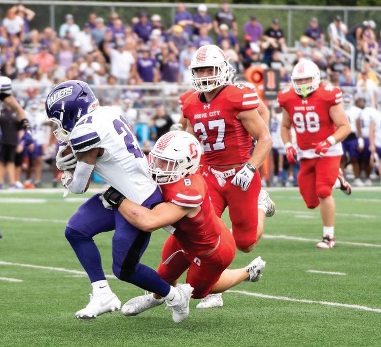 sulted in a missed field goal, but another turnover on downs by Geneva allowed Grove City to move the ball into field goal range. Freshman kicker Brady Lane’s kick was good from 44-yards to the Wolverines and extended the lead to 22-3.