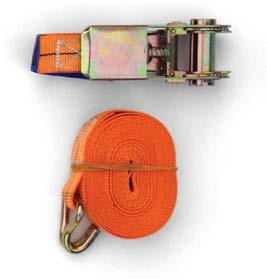 Kraftig oransje jekkestropp med J-kroker for sikring av last på bil og henger. Kapasitet på 1000 kg. Produsert i henhold til EN 12195:2000.