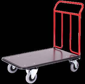 Lett og manøvrerbar skyvetralle for interntransport. Utstyrt med massive hjul, to svingbare og to faste (ø160 mm). Kapasitet hele 350 kg. Leveres flatpakket.