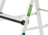 En av våre bestselgende trappestige-modeller. Dette er montørens favoritt! En bred og stabil trappestige i svertefri lett aluminium, med polstrede trinnkanter som er mer behagelig å lene seg mot. Utstyrt med brede sklisikre trinn, stor plattform, avstiverstag, verktøybrett og ekstra støttetrinn bak i aluminium. 3-5 trinn er godkjent etter Bra Arbeidsmiljøvalg (nivå 2). TRINNANNTALL