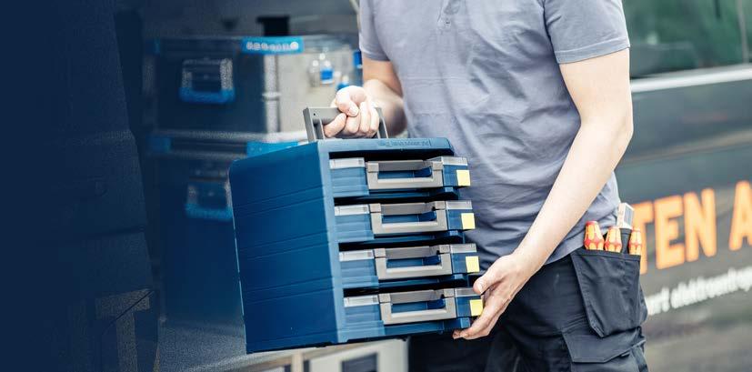Robust og lett sortimentskrin i sterkt materiale med gjennomsiktig lokk og fleksibel innredning med 15 stk. løse praktiske innsatser du kan ta inn og ut. Lav vekt og komfortabelt håndtak. Slagfast og bruddsikker polypropylen og polycarbonat.