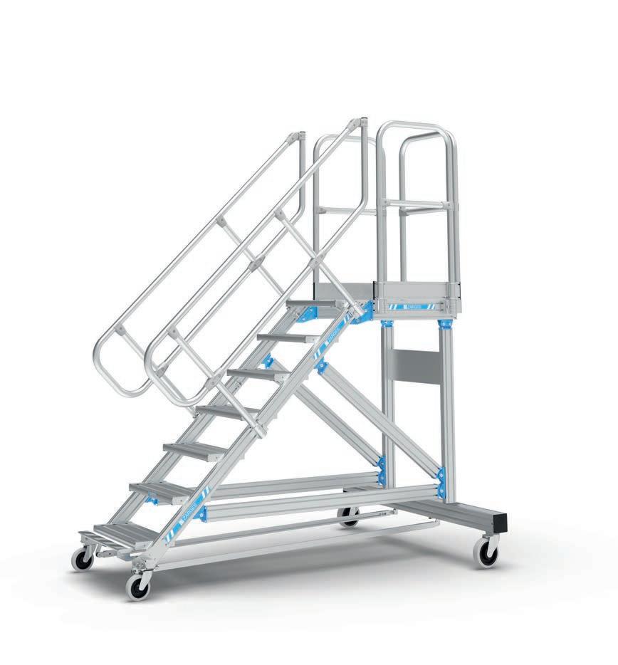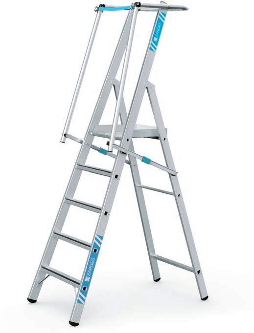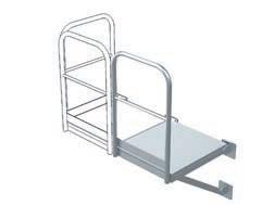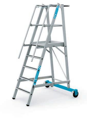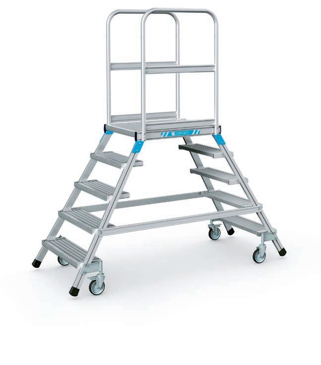 An all-round guardrail with automatic saloon door and 60 mm treads ensure maximum safety up to platform heights exceeding 3.0 metres.