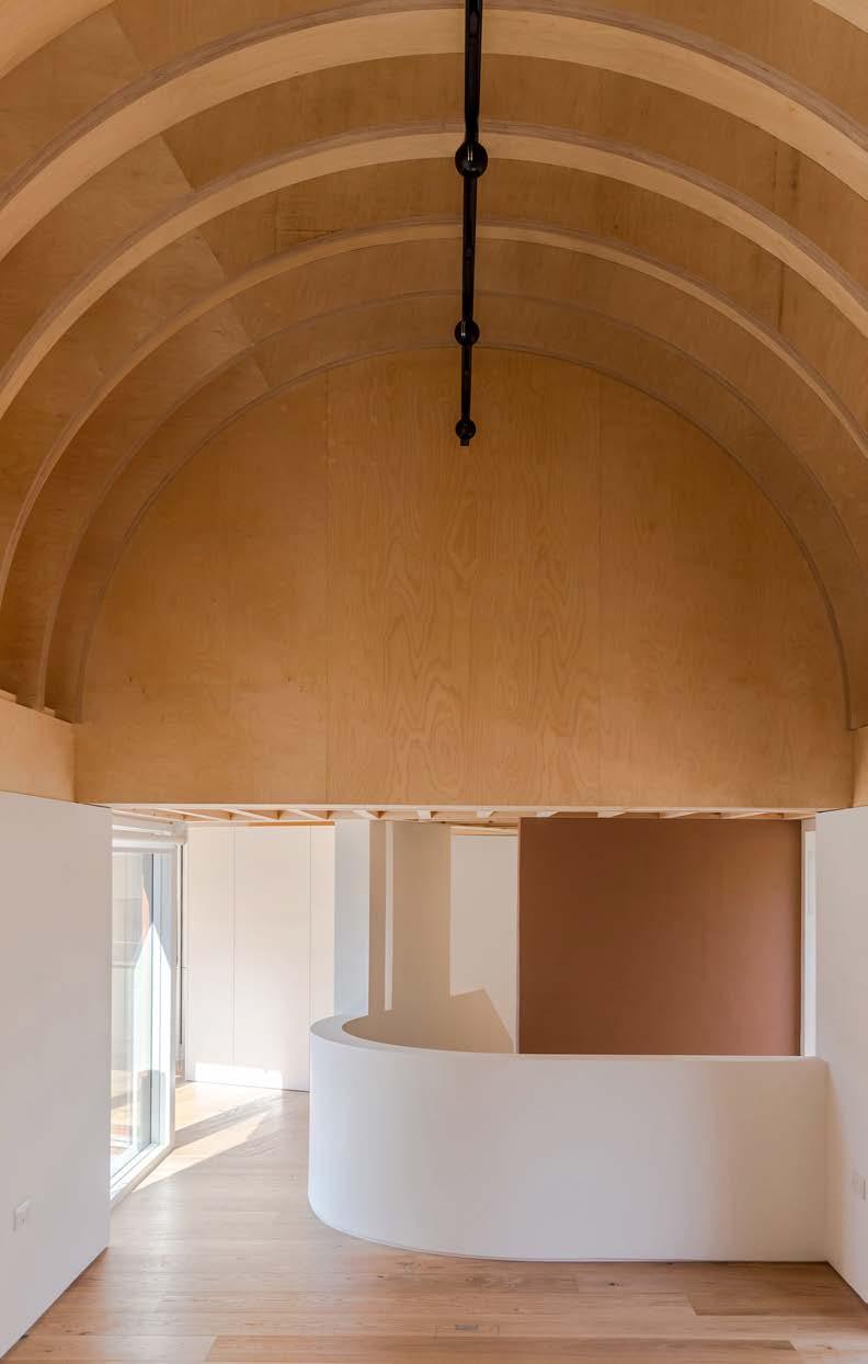 Two sculptural vaults maximize volume within planning constraints - effortless appearance through rigorous execution. Sunken lower ground organizes private accommodation around two courtyards whilst raised ground floor positions living/kitchen to engage mews whilst maintaining privacy.