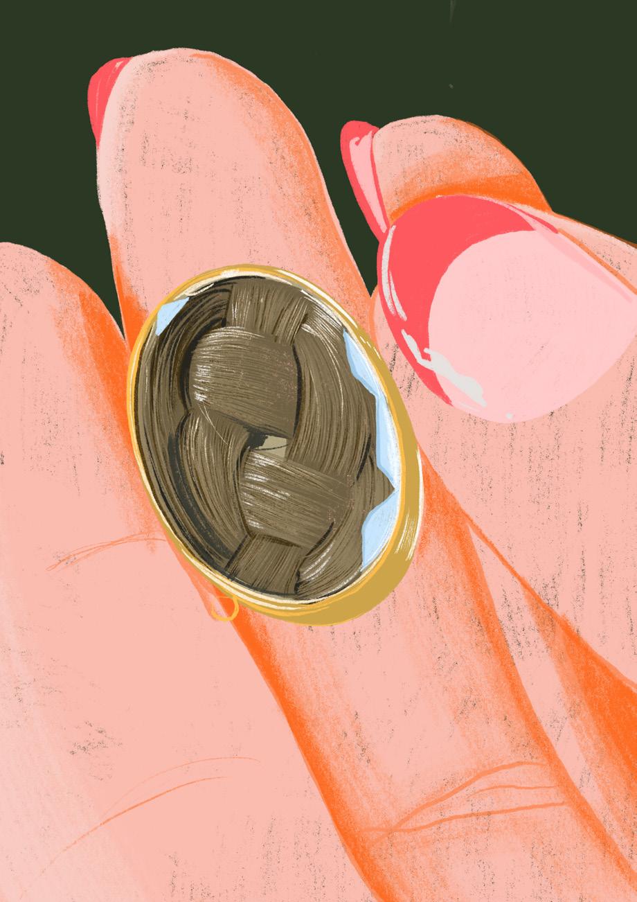 “I think my earliest memories of mourning jewellery are the hairwork pieces, but more specifically the response to the sight of hair when detached from one’s head. As a particularly hir sute person I’ve always found that r epulsion so interesting! It struck me that hair is so personal and intimate, it’s expressive and it contains our DNA. It’s a beautiful token of love to share with someone.”
