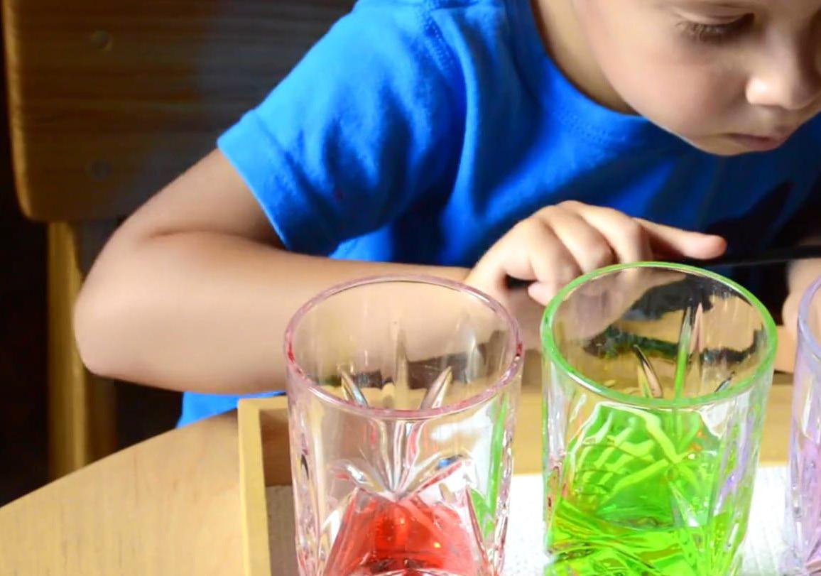 10. If desired, add 1-2 drops of food coloring to each container—our favorite thing to do is to add color in rainbow order, starting with violet and moving through blue, green, yellow, orange and red.
