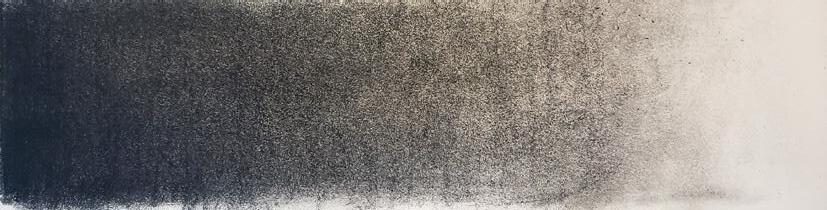 Using a piece of charcoal on paper, press down as hard as you can to create a dark value. As you move from left to right, press down more and more lightly to create a dark gray, light gray, and a bright white.