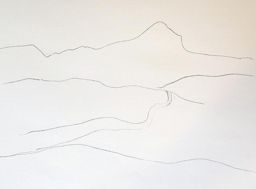 Start with the sky and background, using a range of value and marks to add dimension to your drawing. Use light values to create highlights and dark values to create shadows.