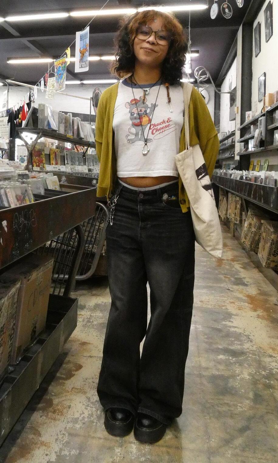 Each one of these lovely individuals is a great example of having a beautiful sense of style, yet they are all so different. Everyone agrees that finding your style is a very personal process. Say hello to Mars Valentine. They are a UCSC student who just graduated this year. Very early 2000s x comfy with an almost Indie color twist. Their jewelry is from Japan, where they studied abroad. Their Chuck E Cheese T-shirt is from a local store in downtown Santa Cruz called Motherload, where Mars works. Their baggy black denim jeans are from an exotic brand with a metal tag on the back, hard to read, but the brand may be Goho. Mustard colored sweater from their girlfriend and classic black platform Doc Martens. When choosing their outfit, Mars mainly steers towards comfort and whatever sparks their internal preferences. Mars finds inspiration from Santa Cruz, along with other people. They merge thrifting into their closet. Mars enjoys taking the time to pick out an outfit; they want the ritualistic aspect of it. The most important part of an outfit for Mars is the accessories, such as scarves, belts, and ties. They have a huge tie collection and usually wear one daily. Mars advises staying in your comfort zone, avoiding falling for trends, and listening to your preferences.