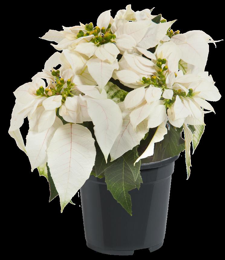 Kerstster Euphorbia pulcherrima ‘Princettia’. Roze of wit. Pot Ø 14 cm.