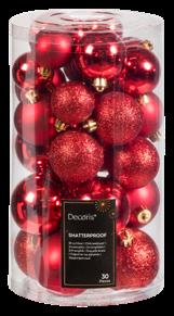Kunststof. Glanzend, glitter en mat in verschillende soorten. Rood- of groentinten. Doos 46 stuks. 16.99 21.99