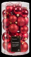 Kunststof. Glanzend, glitter en mat in verschillende soorten. Rood- of groentinten. Doos 46 stuks. 16.99 22.99