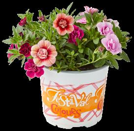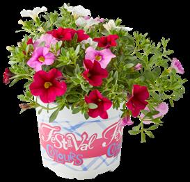 Calibrachoa 'Triobells'. Drie kleuren in één pot. Pot Ø 12 cm. Per stuk 3.99