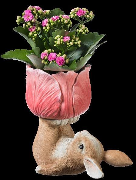 Dit konijntje brengt niet alleen bloemen, maar ook een flinke portie vrolijkheid mee.