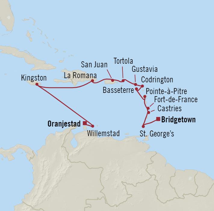 Highlights: Start mitten in der Karibik mit Anläufen u.a. in Willemstad, Tortola, Gustavia, Codrington, Basseterre, Pointe A Pitre, Fort-de-France, Castries