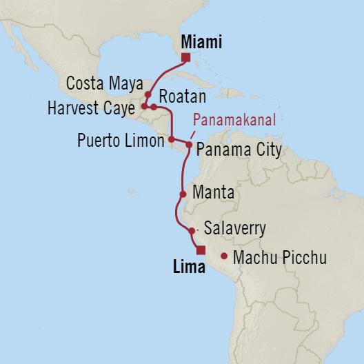 Gehen Sie auf die Suche nach neuen Entdeckungen im Land der Maya und Inka, im wunderschönen Mexiko und im epischen Peru, mit einer Übernachtung im historischen kolonialen Lima, dem Tor zum wolkenverhangenen Machu Picchu. Überqueren Sie zwei Ozeane mit einer unvergesslichen Panamakanal-Passage.