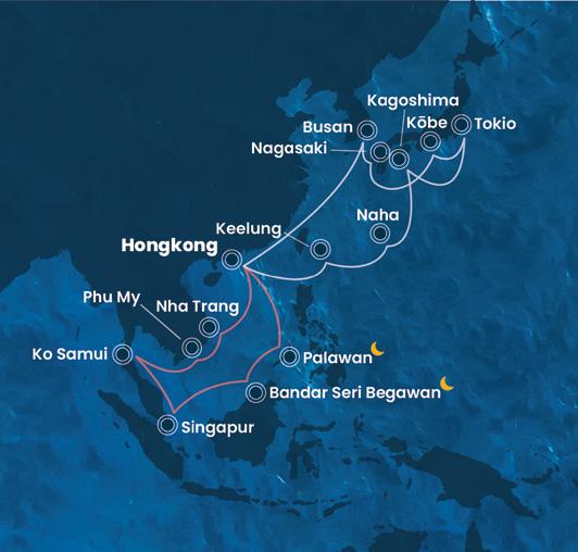 MIT DER COSTA SERENA DAS SCHÖNSTE ASIEN p.P. in der 2-Bett Kabine ab € 1.479,-** Innenkabine (Route A) p.P. ab € 1.479,-** Innenkabine (Route B) p.P. ab € 1.529,-**