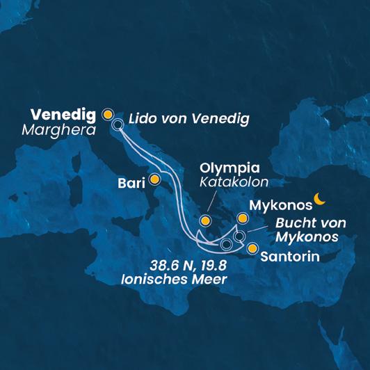 Für Abfahrten 17.05. – 13.09.2025 können Sie die Routen der Costa Deliziosa auch zu einer 15-tägigen Kreuzfahrt kombinieren.