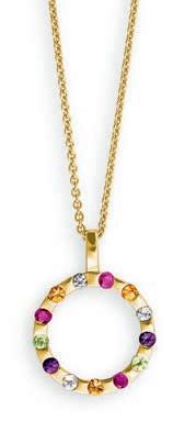 Willkommen im Gefühls-Karussell aus Gelbgold 585 mit Amethyst, Citrin, Rubin, Peridot und Topas. Kettenlänge 45cm.