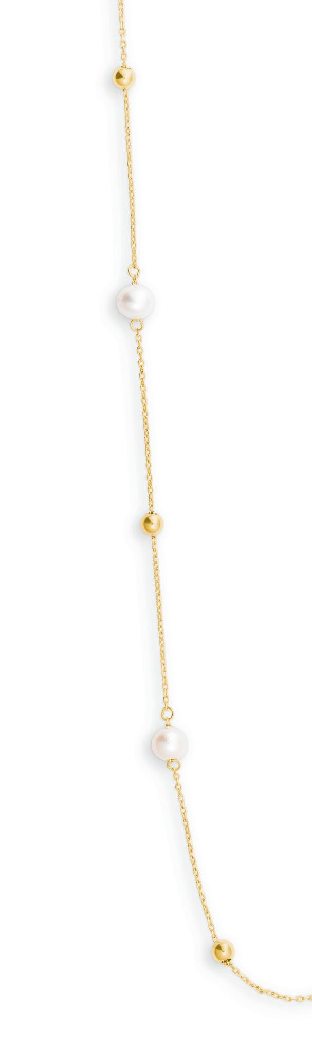 ... und natürlich der richtige Schmuck: Gelbgold 585 mit Süßwasserperlen, Halskette 45cm, Armband 18,5cm.