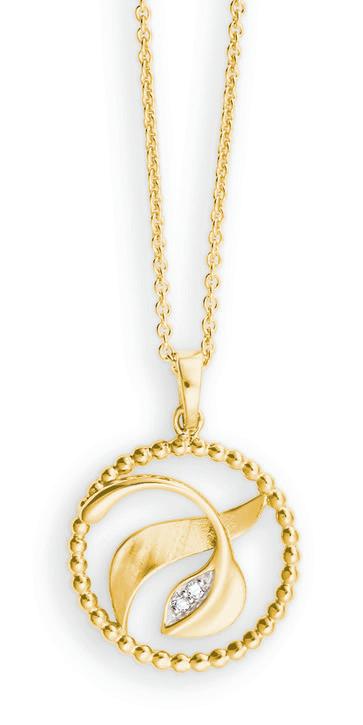 Wer ander‘n eine Blume sät, blüht selbst schnell auf: Sonnige Akzente in Gelbgold 585 mit Brillanten jeweils mind. 0,01ct H/SI. Kettenlänge 45cm.