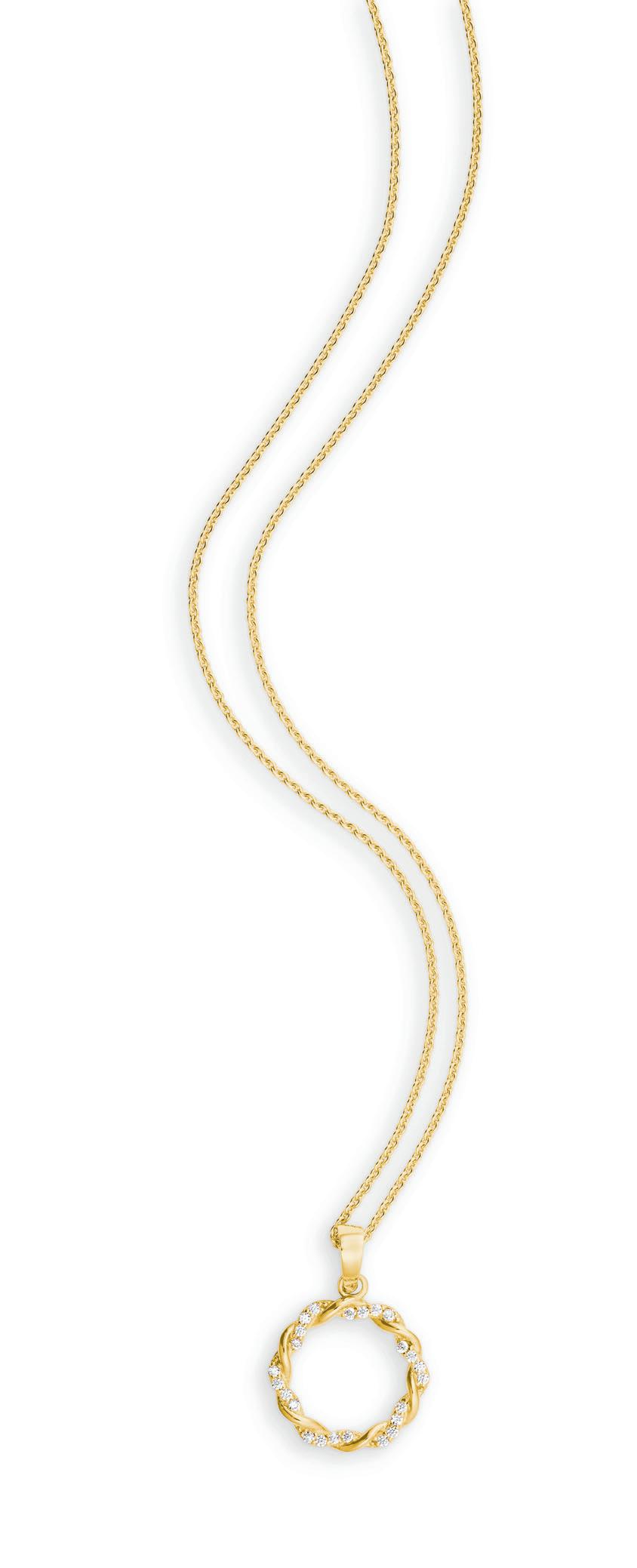 FAMILIEN KRÄNZCHEN. Wenn alle zusammenkommen, schreiben wir die schönsten Geschichten, essen den besten Kuchen und schwelgen in den glänzendsten Erinnerungen. Edles Schmuckset in Gelbgold 585 mit Zirkonia, Kettenlänge 42cm.