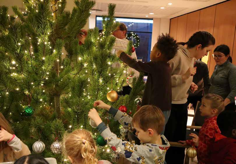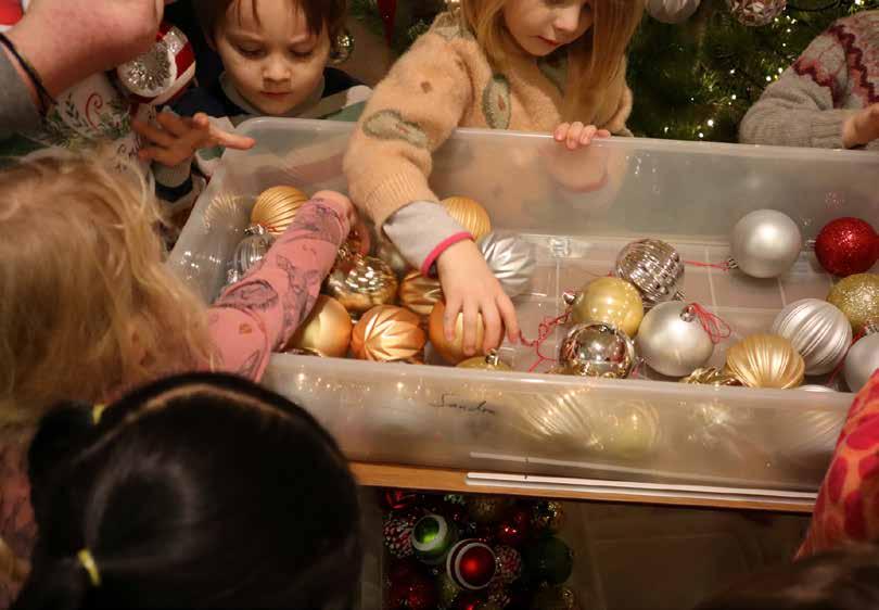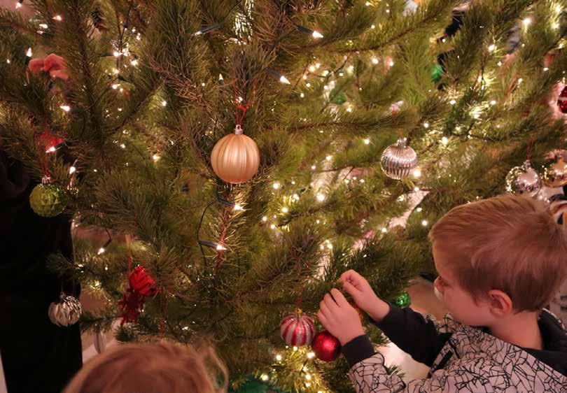 Það voru margar litlar hendur sem aðstoðuðu heimilisfólk við að skreyta jólatréð í matsal Markar á aðventunni.