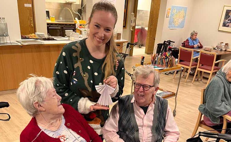 Rétt áður en aðventan gekk í garð var starfsfólk og heimilisfólk í óðaönn að skreyta og gera fínt í Ási. Það er hefð fyrir því að búa til aðventukransa þar og síðan voru líka dagatöl útbúin. Úr urðu ljúfar samverustundir þar sem kátínan réð ríkjum.