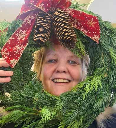 prýðir heimiliskonan Sigurlaug Kristjánsdóttir þar sem hún er að skreyta jólatréð í setustofu Grundar. Ljósmynd: