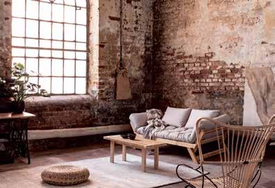Styl wyróżniają stare cegły, ciepłe oświetlenie, naturalne tekstylia i minimalizm
