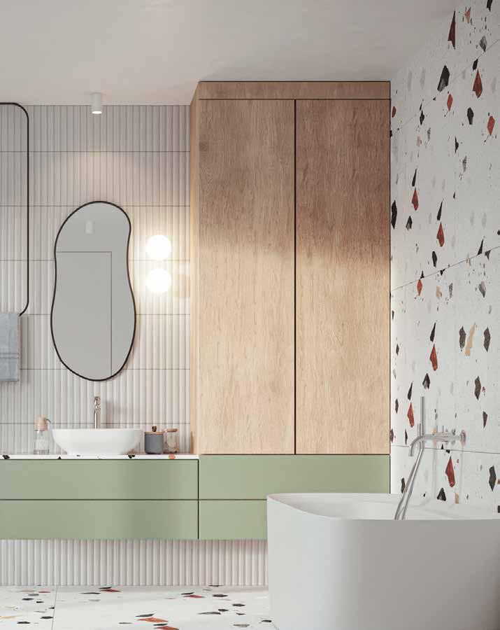 wyższej jakości szkle hartowanym we wszystkich popular nych grubościach, pozwalających na niemal 1000 kombinacji. W najnowszej serii ZEN Minimal urzeczywistnia się prawda, że mniej znaczy więcej – liczba i wysokość profili zostały tu zre dukowane do minimum, potęgując wizualną czystość aranża cji. Profile są zmniejszone zarówno w wersjach na zawiasach, jak i w wariantach przesuwnych, a wysokość wejścia wynosi 200 cm. ZEN XL charakteryzuje się profilem górnym o wyso kości zaledwie 22 mm, szybami ze szkła hartowanego o gru bości 8 mm i ułatwiającym ruch drzwi systemem Softclosing. W przypadku jednościennej narożnikowej ZEN Sao szkło ma grubość 6 mm, a profile stają się jedynie subtelną ramką dla szyby. Nic tu ująć, za to dodać można na przykład personali zowane wykończenie szkła, w różnych wzorach i technikach. Projektując łazienkę, warto poznać również najmłodsze dziecko w rodzinie kabin LIVE. LIVE Top ma wyrazisty profil górny i znacznie zmniejszony profil dolny, 6-milimetrowe szkło i oszczędne w wyrazie, liniowe uchwyty. Występuje we wszyst kich możliwych opcjach konstrukcyjnych i personalizacyjnych. Bo włoska marka musi się odnaleźć w każdej, absolutnie każ dej łazience.