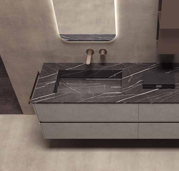 ści użycia uchwytu. Prostota łączy się tu z objętością, fakturą i materią, dopuszczając dziesiątki zmiennych estetycznych. Żeby wyrazić upodobania właściciela łazienki, czasem wy starczy niuans.