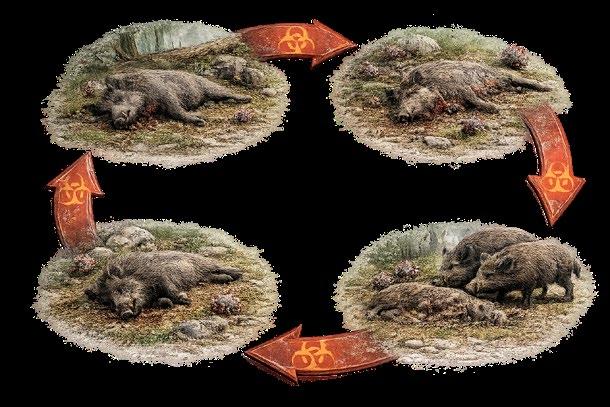 Las formas subagudas o crónicas pueden favorecer una circulación más silenciosa y prolongada en jabalí, dificultando la erradicación.