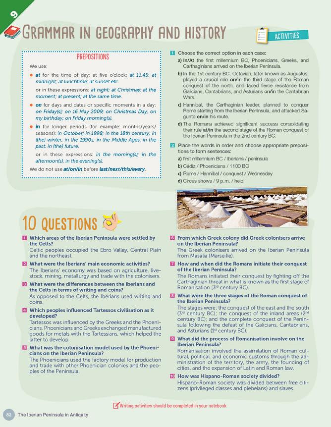 • Grammar in Geography and History: you will find a grammar rule with a proposal of activities to apply grammar to specific contents.