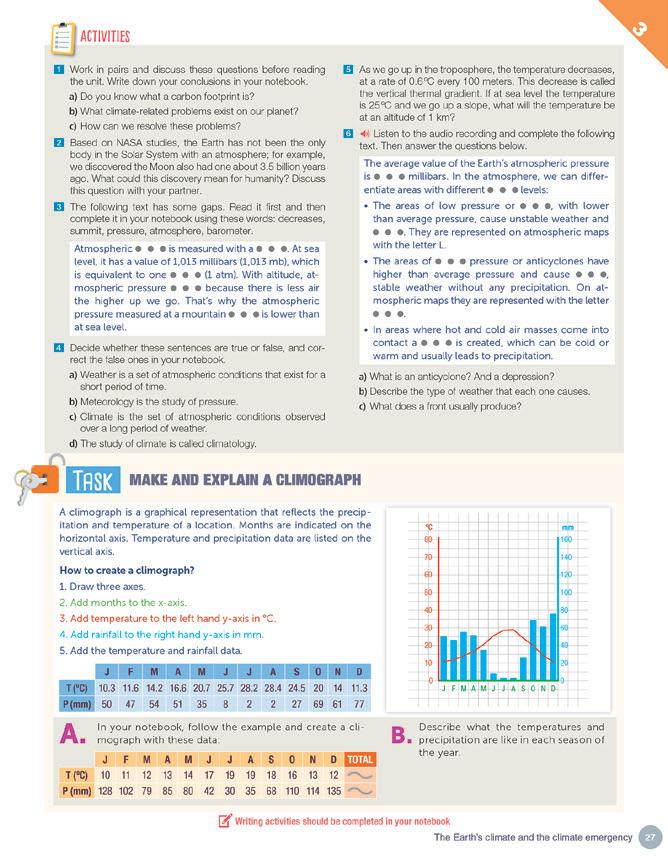 On the right pages you will find all the activities related to the themes located on the left page. The proposed activities follow the CLIL (AICLE) methodology.