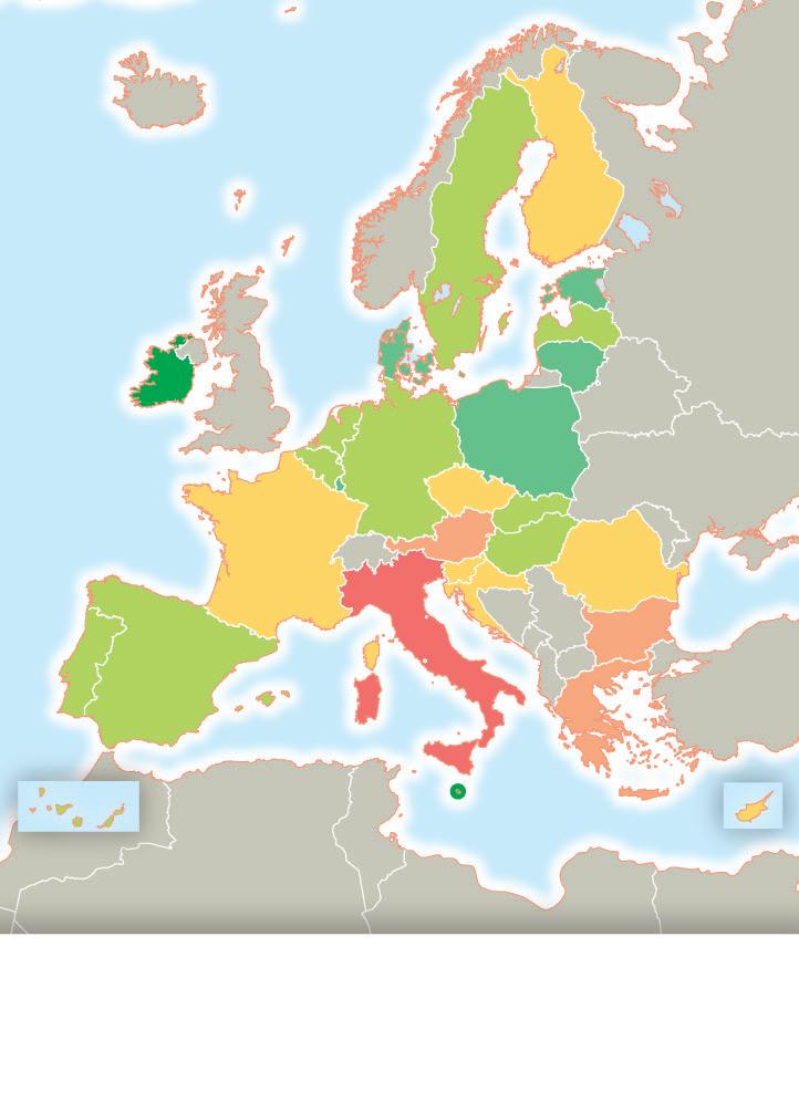 B. Analiza. Ahora, mira atentamente el mapa y di el nombre de los países cuya mayor parte de sus ciudadanos piensa que su país se ha beneficiado de ser miembro de la Unión Europea. Ayúdate con el mapa político de Europa de este anexo si es necesario. Estos países ¿repre-