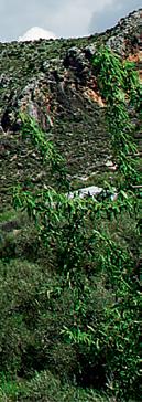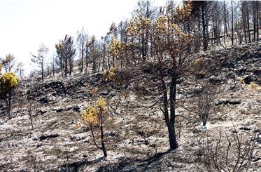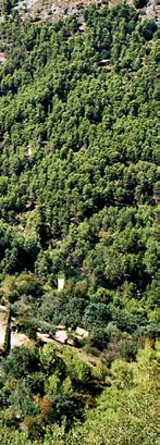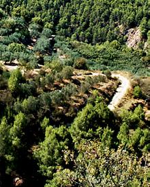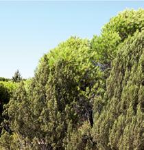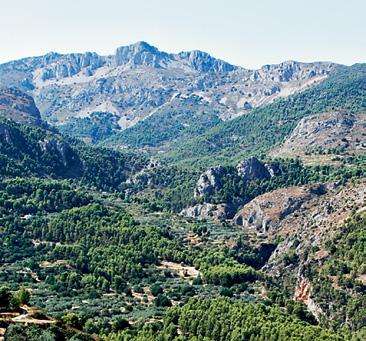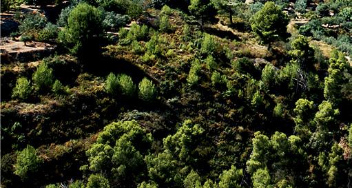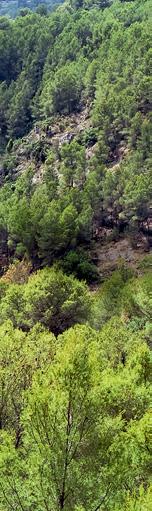 Por ejemplo, en las montañas con suelos calcáreos se dan plantas como el pino carrasco, la carrasca o la sabina, acompañadas por arbustos como el lentisco.