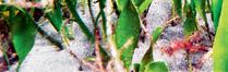 La flora de las orillas está formada por especies muy resistentes a las altas concentraciones de sal, como la salicornia.