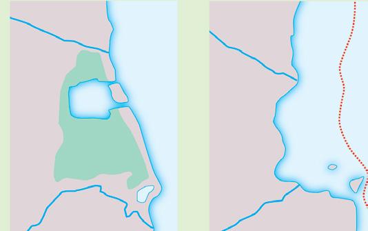 5 Observa estos dibujos que ilustran el proceso de formación de la albufera de Valencia. Investiga, ordénalos en el tiempo y redacta una explicación.