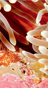 En los fondos rocosos crecen algas macroscópicas, hay erizos de mar, lapas, anémonas, corales rojos, esponjas, langostas y peces, como el mero, la dorada, el sargo o la morena.