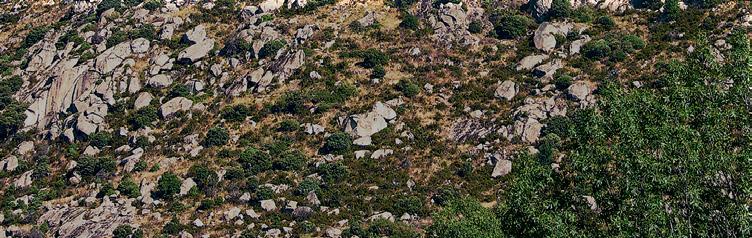 En cambio, en los suelos silíceos que se forman en zonas dominadas por las rocas metamórficas se dan el alcornoque o el pino rodeno.